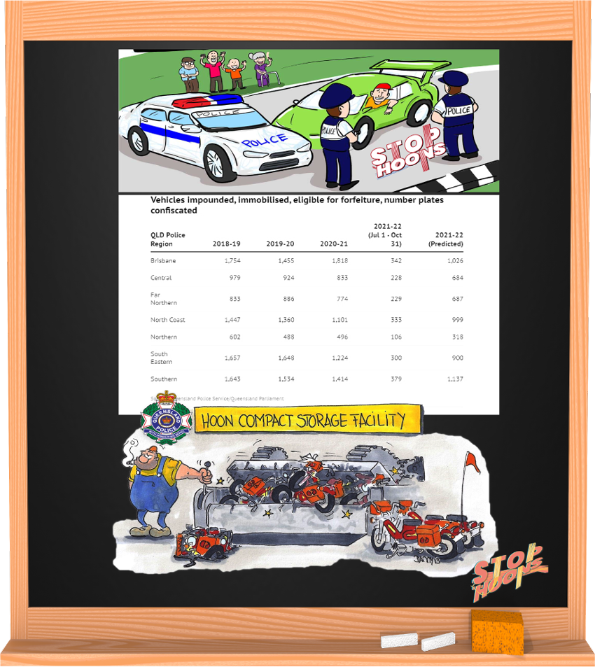 Wide Bay 228 vehicles impounded, immobilised, eligible for forfiture, number plates confiscated.